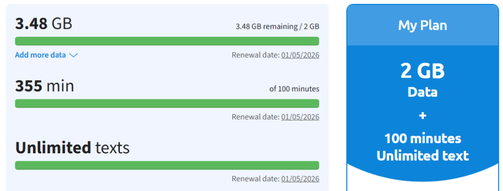 電話は殆どしないので、Telloに乗り換えれば同じ1GBという条件で月6ドルという驚きの安さ。しかも自動課金されないので、うっかり追加料金が発生することもありません。逆に使用量が少ない月は、残りデータを翌月に繰り越しができるので無駄なく安心して使えそうです。